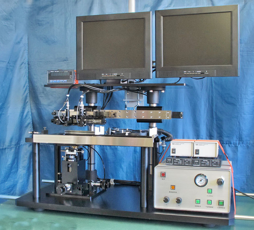 微小な構造物やパターニングのあるガラス、シリコン基板など2枚の試料を高精度でアライメント(位置合わせ)して仮固定する装置です。