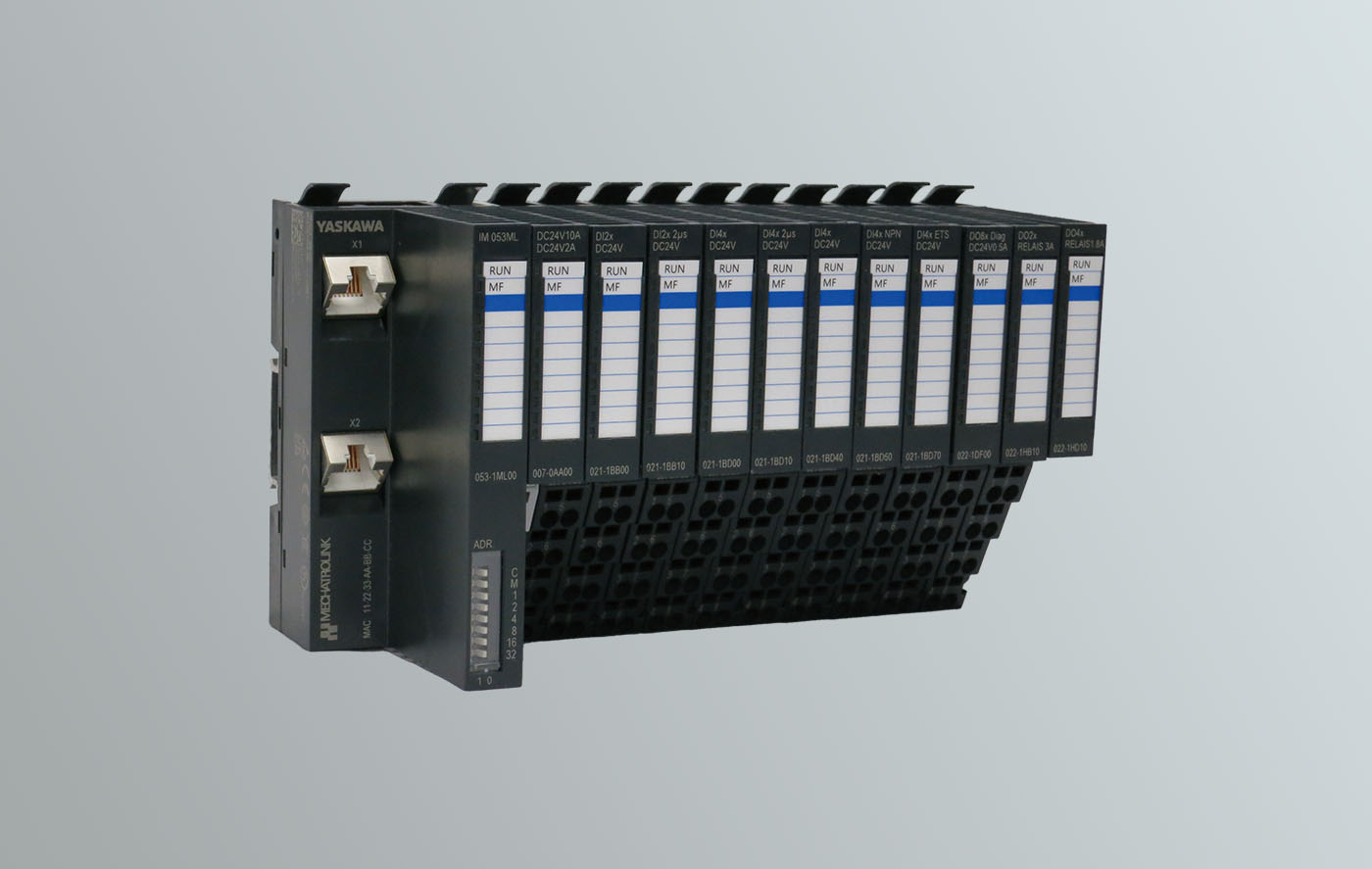 | SLIO I/Oシリーズ | SLIO I/Oシリーズは、各種通信ネットワーク(MECHATROLINK、EtherNet/IP、PROFIBUS、EtherCATなど)に接続してご利用いただけるコンパクトな形状のリモートI/O製品です。ネットワークに接続するためのバスカプラ※1は最大64個のモジュールを取付可能で、用途に合わせて柔軟なシステムを構築できます。I/O モジュールには、デジタル入出力(2,4,8,16点)やアナログ入出力(2,4,8チャネル)モジュールがあります。 |